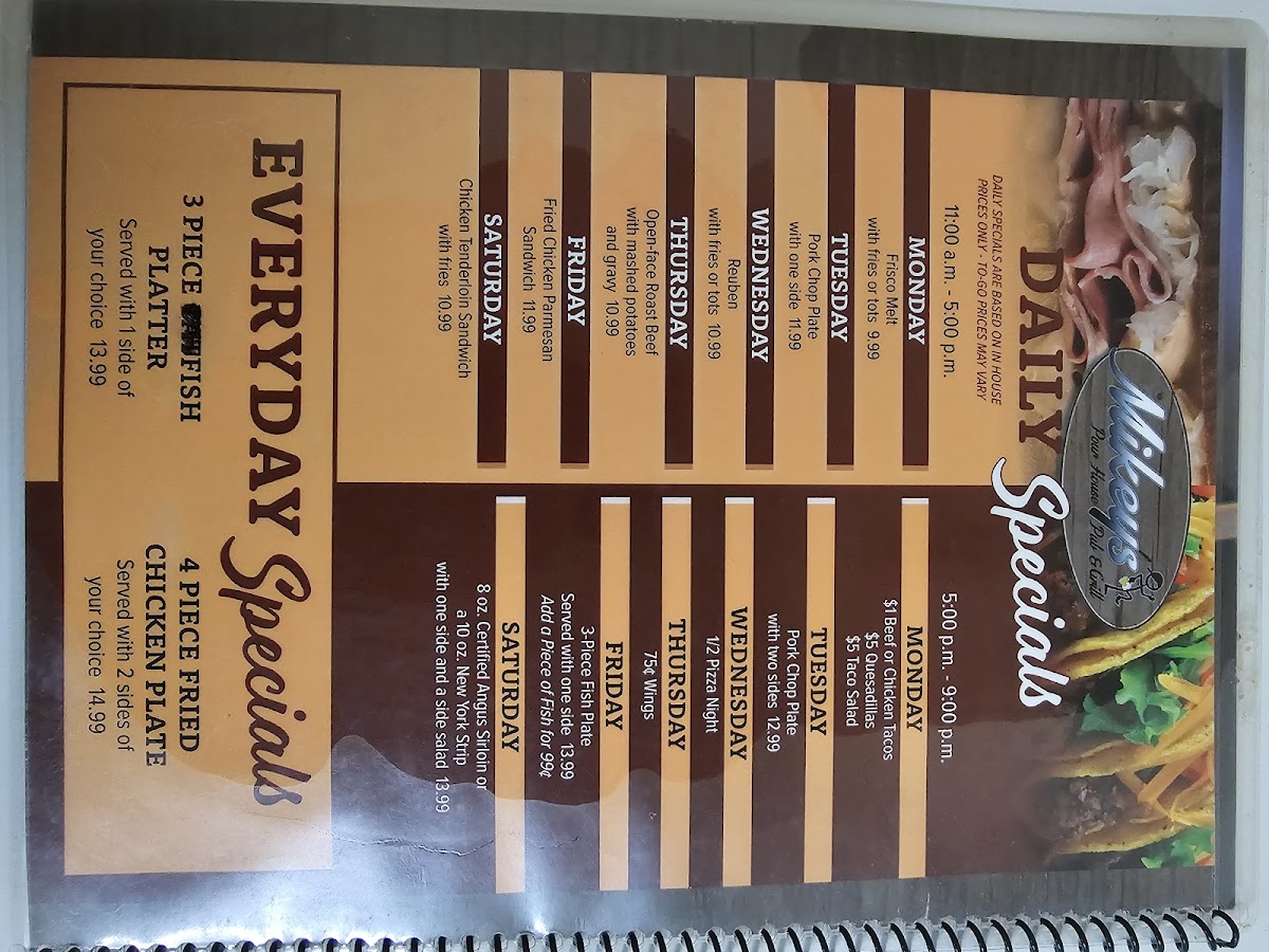 Mikey's Pour House Pub and Grill Menu